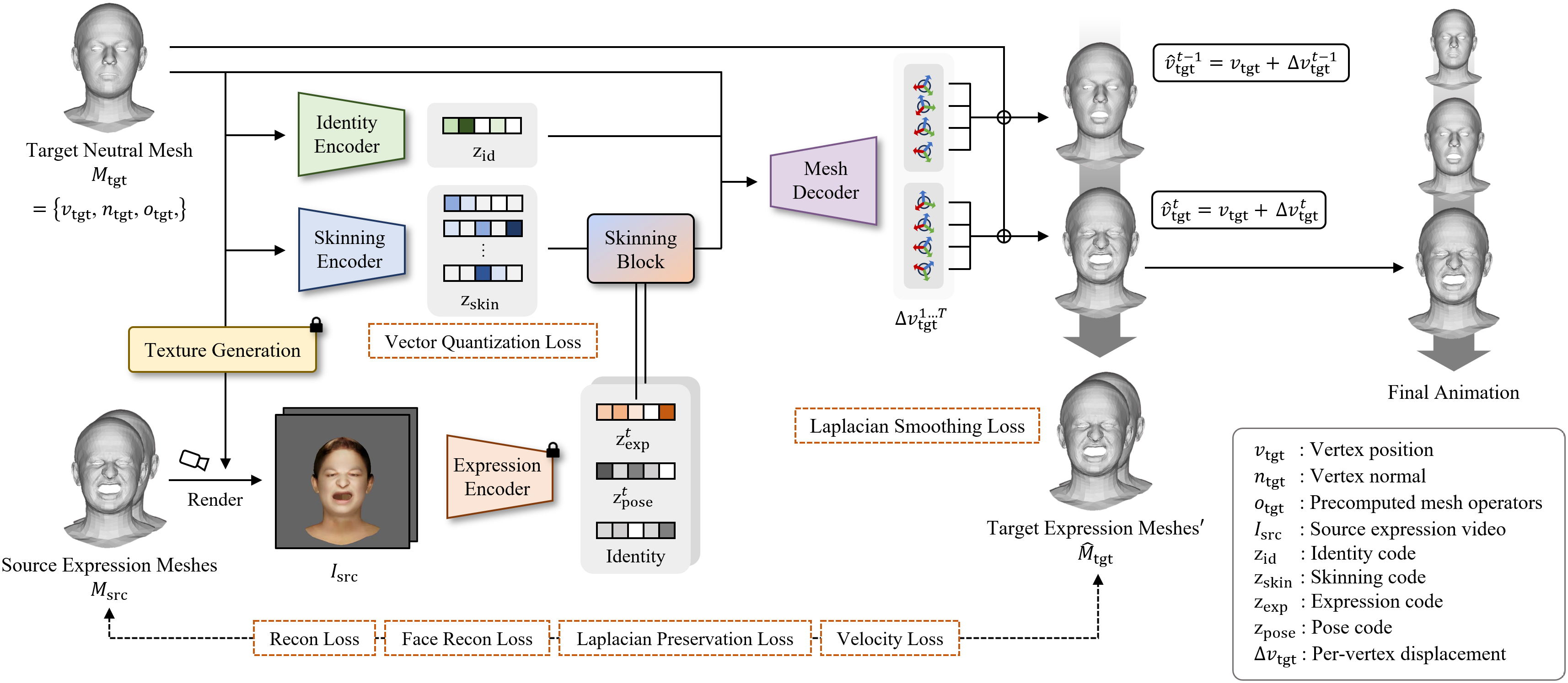 We present Anymate, an end-to-end method for capturing and retargeting facial animation from RGB videos to 3D face meshes with various shapes and mesh structures. Our approach tackles the challenge of animating arbitrary 3D faces from in-the-wild video without relying on shared mesh structures or manual correspondences Most existing methods address facial expression capture and retargeting as separate problems, necessitating an additional mechanism to bridge the two tasks. To address this gap, we introduce Anymate, a novel method that animates arbitrary target meshes using source performance videos. Anymate disentangles expression, identity, and skinning features through dedicated encoders and predicts per-vertex deformations using a mesh-agnostic decoder. Temporal coherency is maintained by aggregating expression features across consecutive frames using a temporally aware decoder. In addition, we employ a Laplacian preservation loss to encourage smooth and natural surface deformations, and a Laplacian smoothing loss to suppress local artifacts by promoting surface regularity. Despite being trained on a limited set of templates, Anymate can be generalized to unseen characters at inference time, producing animations that accurately reflect the source performance while preserving the identity of the target mesh. Quantitative and qualitative evaluations including a user study demonstrate that Anymate outperforms state-of-the-art approaches.